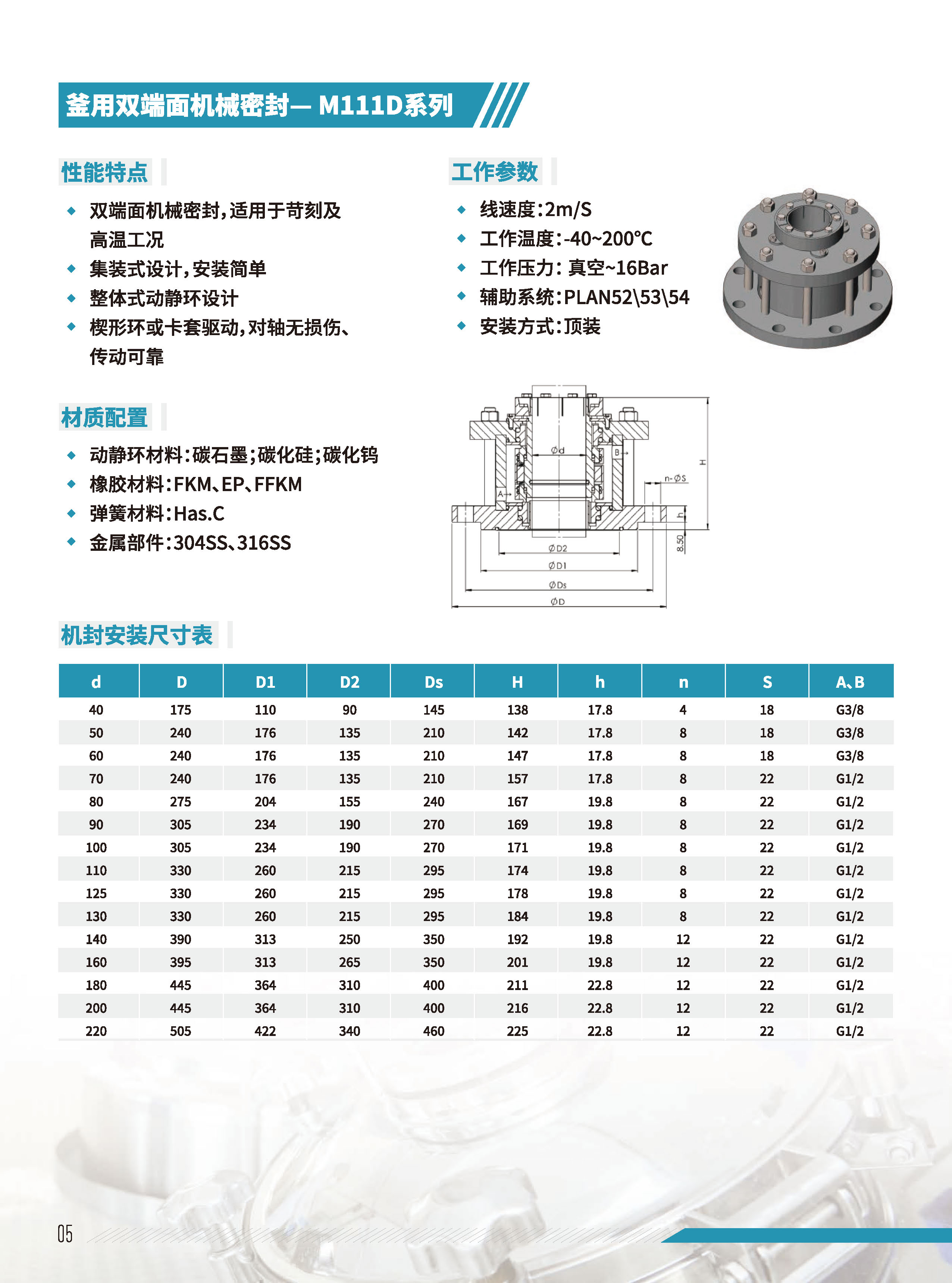 搪玻璃釜用双端面带轴承机封MG111B系列