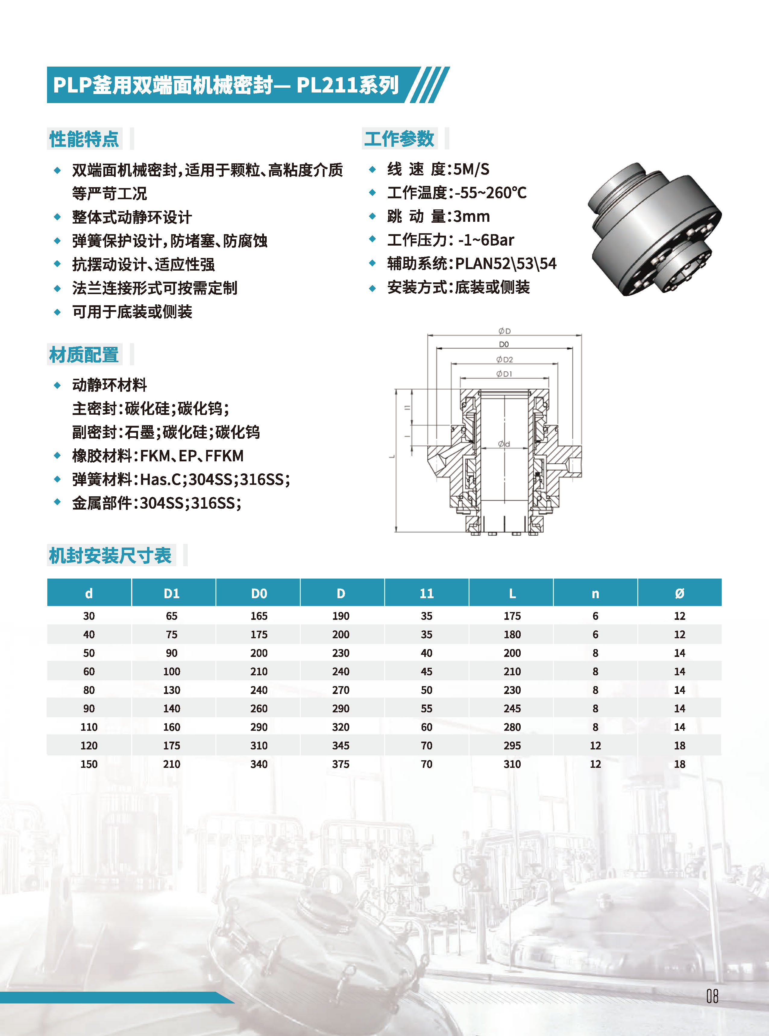 - 双端面机械密封,适用于颗粒、高粘度介质等严苛工况