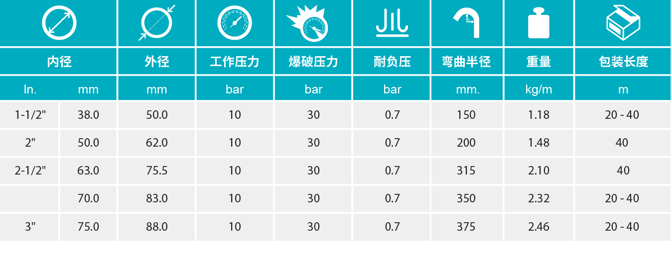 - 【内层】食品级EPDM合成橡胶,白色,光滑