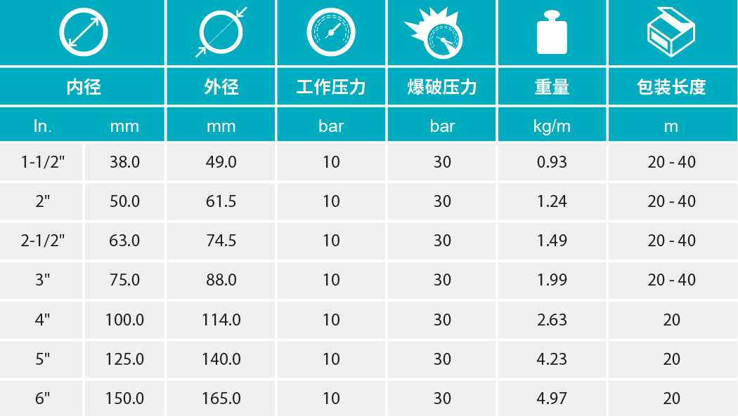 - 【内层】食品级EPDM合成橡胶,白色,光滑