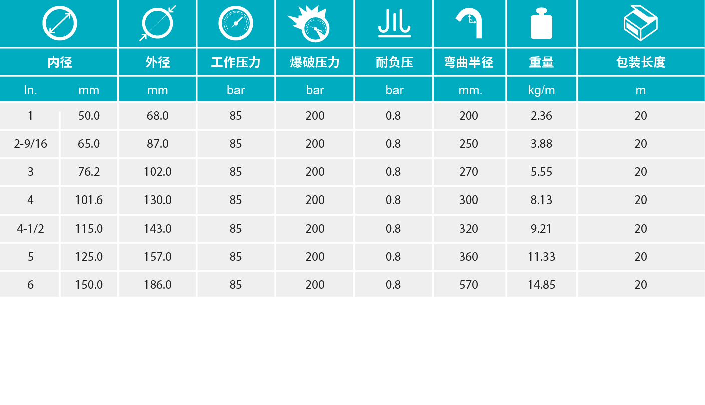 【增强层】ID≤65mm 2层钢丝缠绕,ID≥76.2mm 4层钢丝缠绕