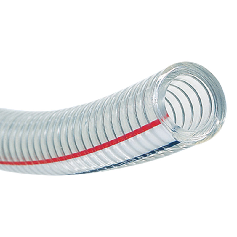 由软PVC制成的真空(吸引)、压送耐压胶管,透明性出色,即使在配管异常弯曲的场所中也不易弯折。适合用于机械设备配管等弯曲半径小的场所或可动部位的胶管配管。可用作工厂设备配管用胶管、各种机器组装用胶管。