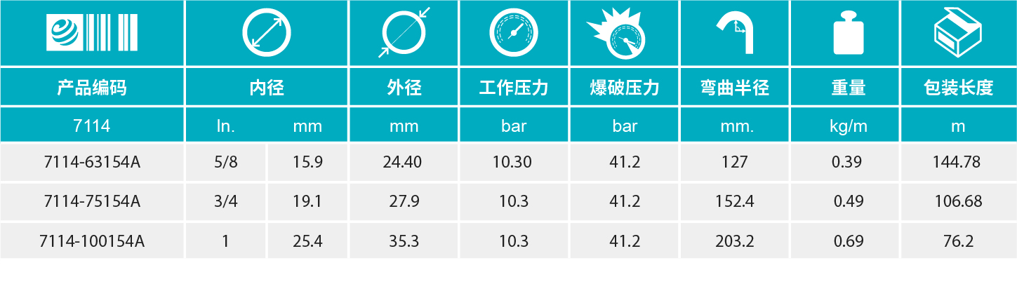 7114系列用于输送成品油,如生物柴油,乙醇,汽油和石油等。柔软的管壁和纤维增强层使得软管具有良好的柔软性和耐扭曲性,内置导电金属丝接地可排静电,外胶具有优异的耐磨性,防切割性,耐油性和耐臭氧性,且不会对运输车辆造成磨损。
