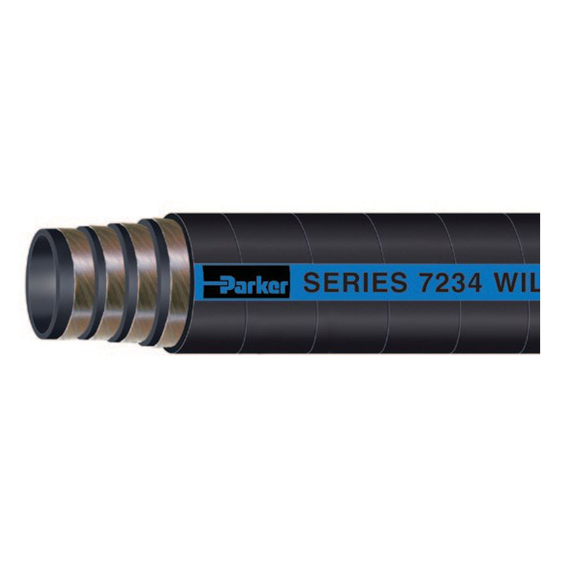 7234重型高压多用途软管,用于输送水泥,一般化学品,油和水,以及油田应用领域,如配套便携式钻井装置,输送循环系统等。软管具有良好的耐负压,耐扭结性和导静电性,丁苯/PVC混合外层耐磨,耐油和耐候。