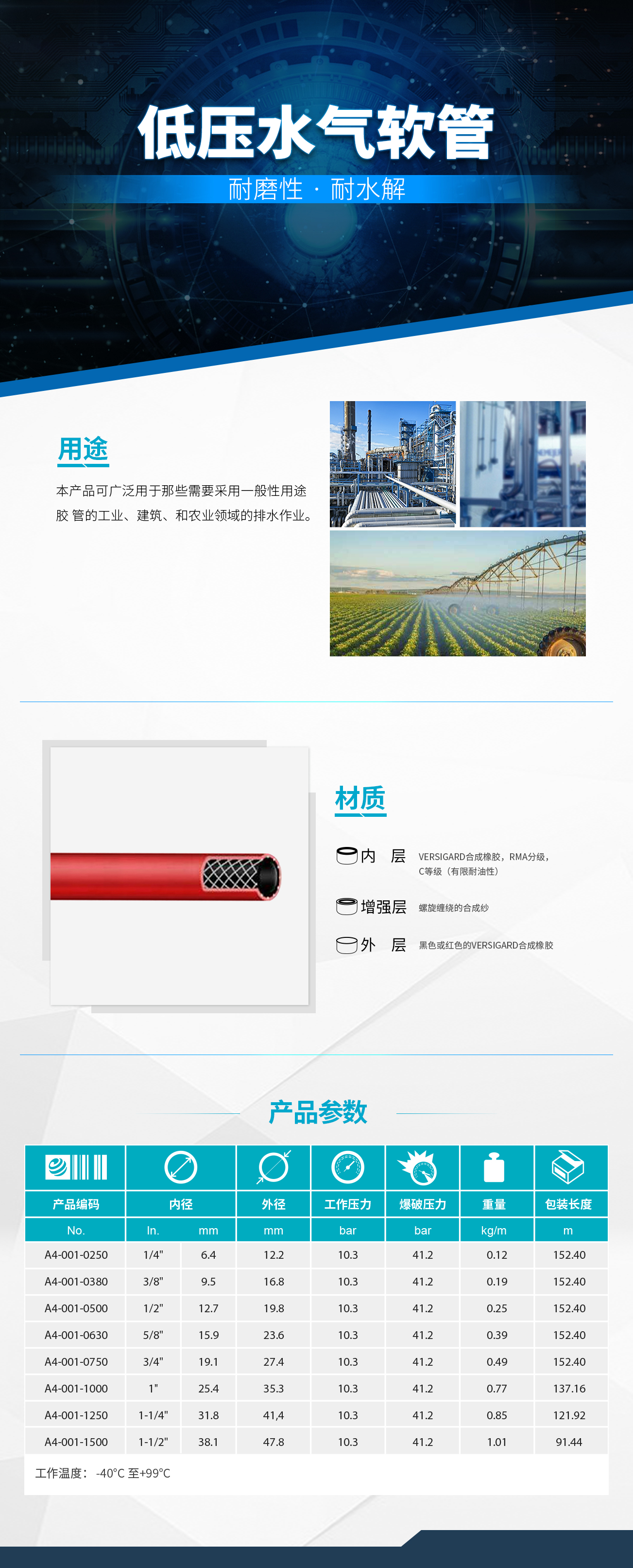 本产品可广泛用于那些需要采用一般性用途胶管的工业、建筑、和农业领域的排水作业。