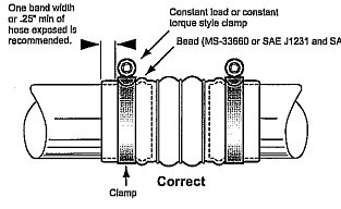 正确的安装方式 喉箍应按照制造商推荐的扭矩值去安装,见左一图。 |