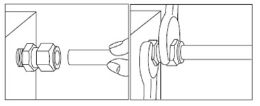 1. 很简单地把管子套入配件本体,确保管子末端紧贴本体的凸肩,同时先用手指稍微扭紧螺帽