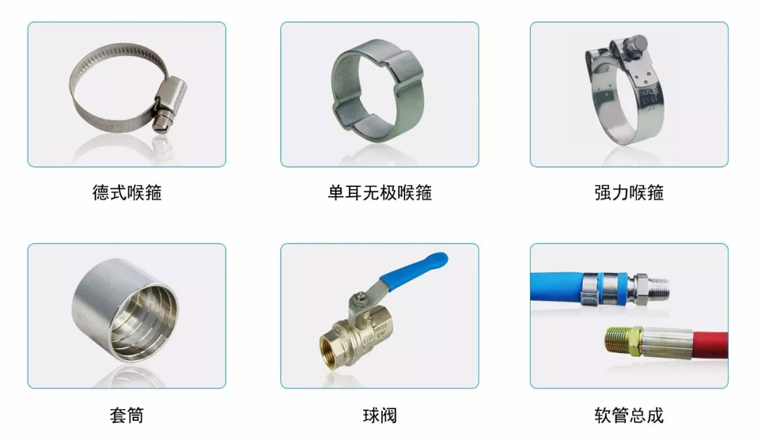 有了好的软管和接头,剩下的就是将它们紧固连接了。依然放心的交给我们吧,我们提供全面的接头紧固方案,无论是喉箍、卡箍、扣压、扎带、两片式卡箍紧固,均有安全可靠的产品方案提供。