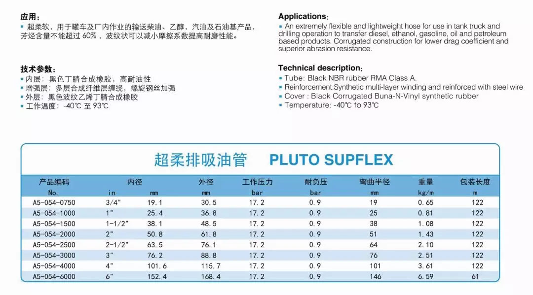 一种超柔、轻质的用于罐车及工厂内作业输送柴油、乙醇,汽油及石油基产品,芳烃含量不能超过 60%
