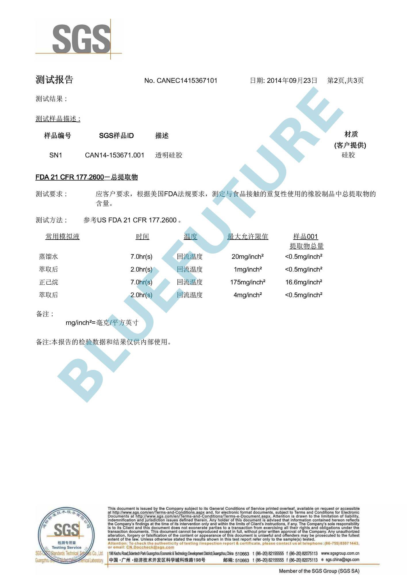 下面这份是我们针对硅胶管产品做的FDA检测报告,检测机构是SGS。SGS是全球领先的第三方检测机构之一。