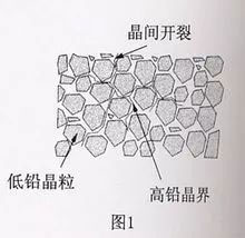 晶间腐蚀:沿着金属晶粒间的分界面向内部扩展的腐蚀。主要由于晶粒表面和内部间化学成分的差异以及晶界杂质或内应力的存在。
