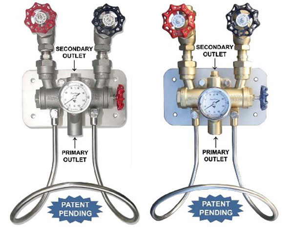 产品的上下双出水口设计便于客户能从两端分别利用热水。底部主出水口可与软管和水枪连接用于清洗设备,上部的次出水口可与硬管连接,主出水口在完成清洗工作关闭后,用户就可以从次出水口继续利用热水,能大幅度的节约能源成本。换句话说,该设备可以一天24小时,一年365天连续不断的提供热水。产品独特的内部结构设计使得蒸汽不会渗出;如果冷水突然断流,该产品会自动关闭蒸汽阀,是世界上安全的蒸汽-冷水混合器。