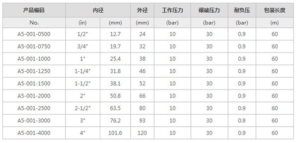 内层:食品级EPDM合成橡胶,白色,光滑