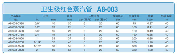 A8-003 卫生级红色蒸汽管 WASH WAY
