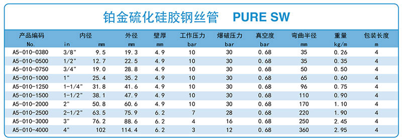 A5-010 铂金硫化硅胶钢丝管(PURE SW)