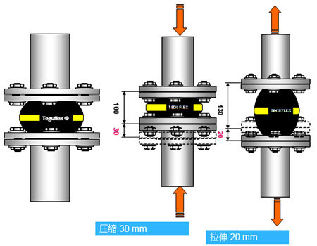 因为橡胶膨胀节的长度比较短,可以满足狭小空间的安装使用。如果安装空间足够宽敞,也可以推荐食品级软管总成,在减少机械振动等作用方面,可以替代橡胶膨胀节。