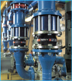 橡胶膨胀节也叫补偿器,由橡胶体和法兰、支架等附件组成。其原理是利用橡胶体的有效伸缩变形,来吸收管道因热胀冷缩或者机械振动等原因而产生的尺寸变化,比如管道的轴向位移、横向位移或角位移等,也可用于降噪减振。