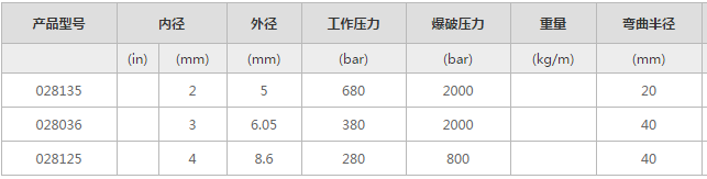 测压软管接头总成的公称通径为2-4mm,工作压力为40-63MPa,用于液压系统中,测试液压系统中各点压力和作为传导流体介质的管道,该软管接头总成与测压点接头配套使用,具有结构先进,密封可靠、扣压牢靠,体积小,重量轻,使用简便等特点,其连接形式有铰接式,快换式,锥面密封式等形式。适用于各种矿物油或植物润滑油,阻燃液压油及矿基或乙二醇基液体;这种小尺寸软管甚至可以耐受冷却剂、水、碳酸、氮气和氧。