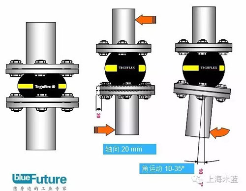 橡胶膨胀节被用来吸收轴向、横向位移和角运动。