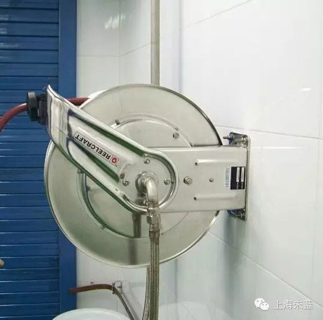 不锈钢卷轴全部采用美国304级优质不 锈钢制造而成,使用抗腐蚀不锈钢卷轴,将会延长用于输送化学流体或用来清洗的软管的寿命。通过合理的存放,不使用的软管,可以减少由于软管存放杂乱无序引起的绊倒事故,同时改善工作环境。