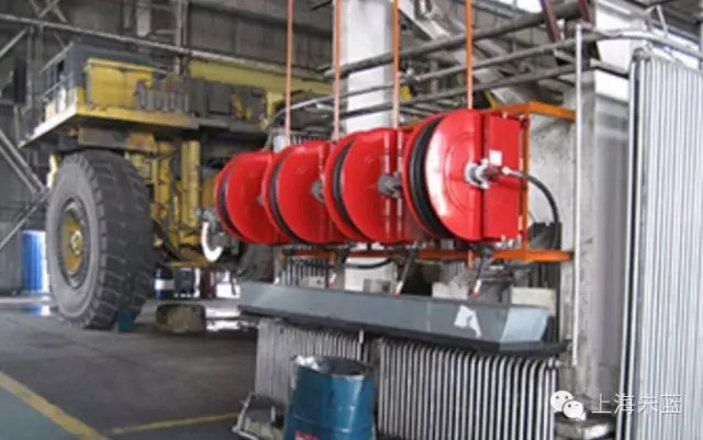 矿山设备通常较大型,而且经常移动,维修补给要用到很多的压缩空气、氧气乙炔、水、油、油脂等需用管子输送,需要卷起来收纳和保护。矿山的工作环境又比较恶劣,所用卷轴一定要在结构强度很高,结实耐用的卷轴才行! 主要应用在设备维修车间、补给车、矿井内。