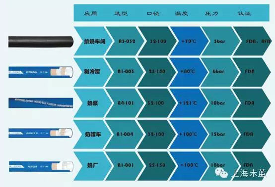 未蓝牧场专用输送方案,是根据我们多年乳品行业、牧场软管服务经验,按照客户需求、行业规范,集合了国内外一线的产品资源,如TRELLEBORG、CONTITECH、GOODYEAR、SUPFLOW、CAFER等,专门提供的牧场流体输送、清洗、连接、减震等输送方案,涉及牧场挤奶生产、制冷罐转运、奶泵转运、奶罐车收奶卸奶、乳品工厂生产等,符合FDA、BFR、GB/T 21928-2008 等认证,是目前国内齐全的牧场软管成套方案制定者。