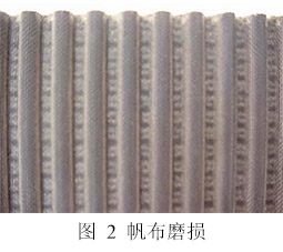 同步带的齿部也同样会失效,但是这不属于理想的皮带失效模式。在长期的运转下,虽然皮带能够保持初始的大小和形状,但是皮带齿部会出现磨损。皮带帆布的外露纤维会使皮带齿部看起来粗糙毛燥,如图 2 所示。