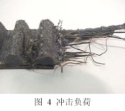 剧烈的冲击负荷可以导致皮带芯线以粗糙的不平均的形式断裂,如图4所示。皮带齿部在带轮中经过即时冲击负荷后可发展成齿根开裂和/或齿部脱落。如果冲击负荷只发生一次,或在皮带固定的位置重复循环,皮带的其余齿部可能看起来还是正常的。图5说明了齿根开裂如何在齿内进行扩散。在齿根形成的裂缝有时会扩散到齿尖。积聚过多裂缝时齿部就会剪切,就会只剩下齿的一部分。